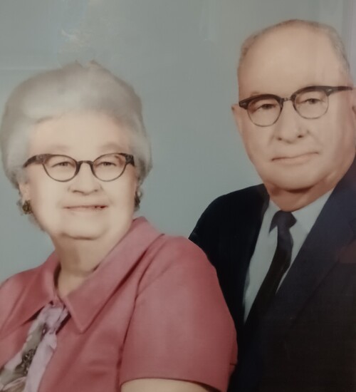 Brownie lived as an orphan in his grandmother's home in Indiana for a time. After some time, he moved from Indiana to Eastern Oklahoma, and from there on to Geary.Entering grade school in Geary, Brownie found himself in a classroom where there was only one empty seat. That seat was next to a young lady named Frances Norris. To Brownie, she was "Toots". September 26, 1920, Brownie married:Toots and the couple enjoyed 67 happy years together until Totts's death on August 25, 1987.